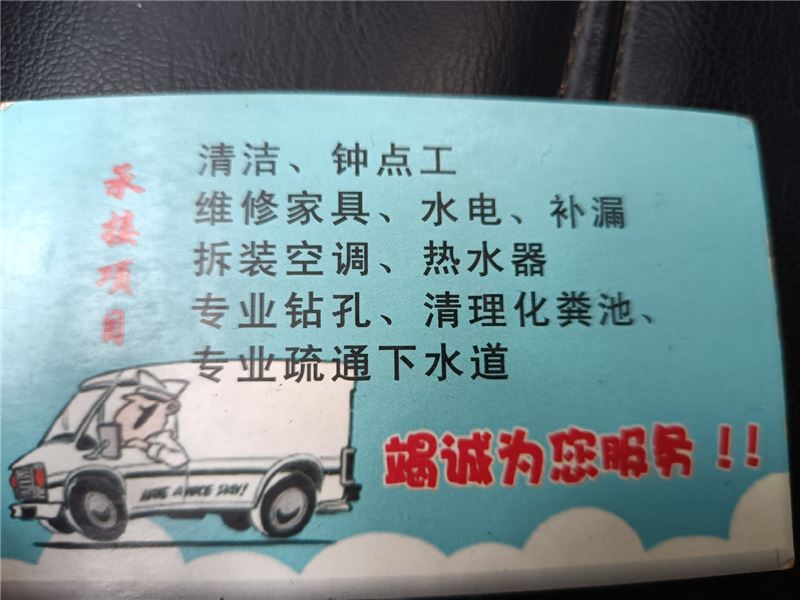 乐乐搬家公司为你服务!承接项目,搬家上楼、家具拆装、空调拆装、热水器、水电维修、钻各种各样的孔、接下水道内管道、清理化粪池,NoBi